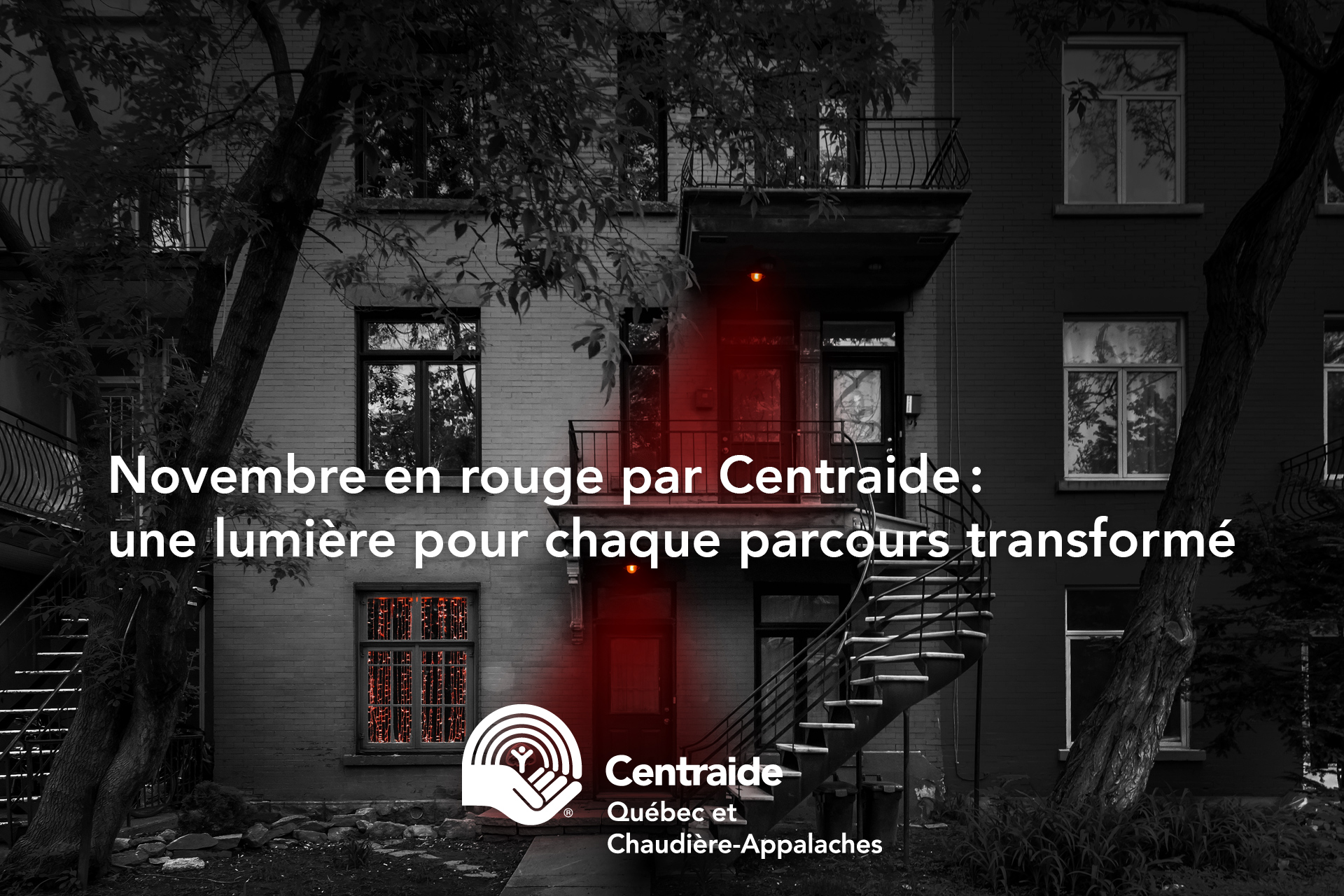 Si vous souhaitez faire partie du mouvement en éclairant l'extérieur de votre logement en rouge, n'oubliez pas de mentionner notre compte Instragram Centraideqca et de partager votre photo avec le mot-clic #NovembreEnRouge.