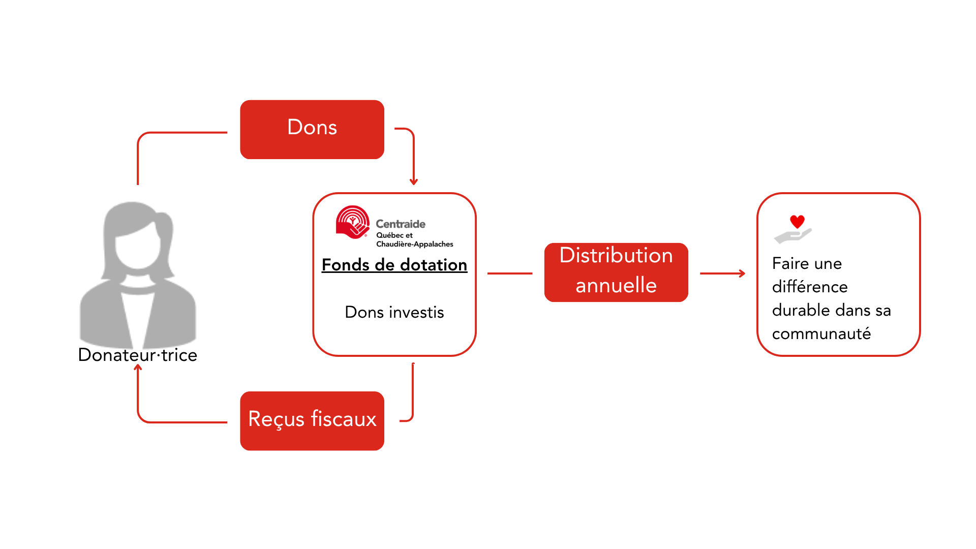 Gestion clé en main : Capitalisé votre don en toute simplicité, sans contrainte administrative, pendant que Centraide assure la gestion du fonds.